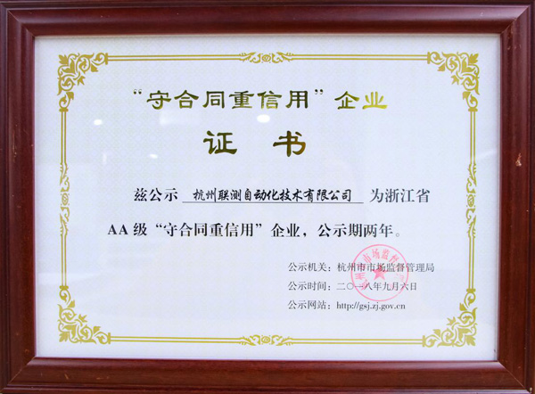 聯測再次榮獲“守合同重信用”企業榮譽稱號